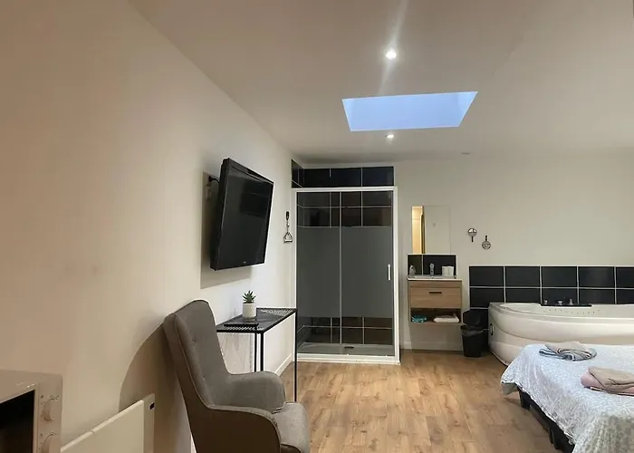 Een complete keuken met een koelkast behoren tot de voorzieningen voor self-catering. Rochdale bushalte is in de onmiddellijke nabijheid van Le Nid Cosy Avec Balneo Appartement verwijderd.